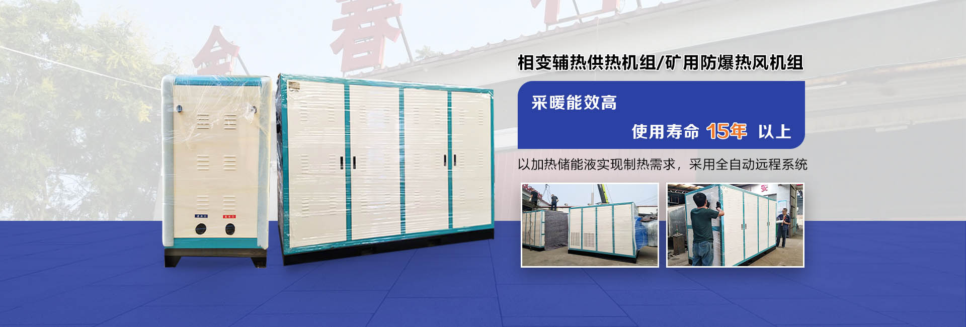 • 多年專注生產相變輔熱供熱機組、礦用防爆熱風機組,可代替燃煤、燃油、燃氣鍋爐
